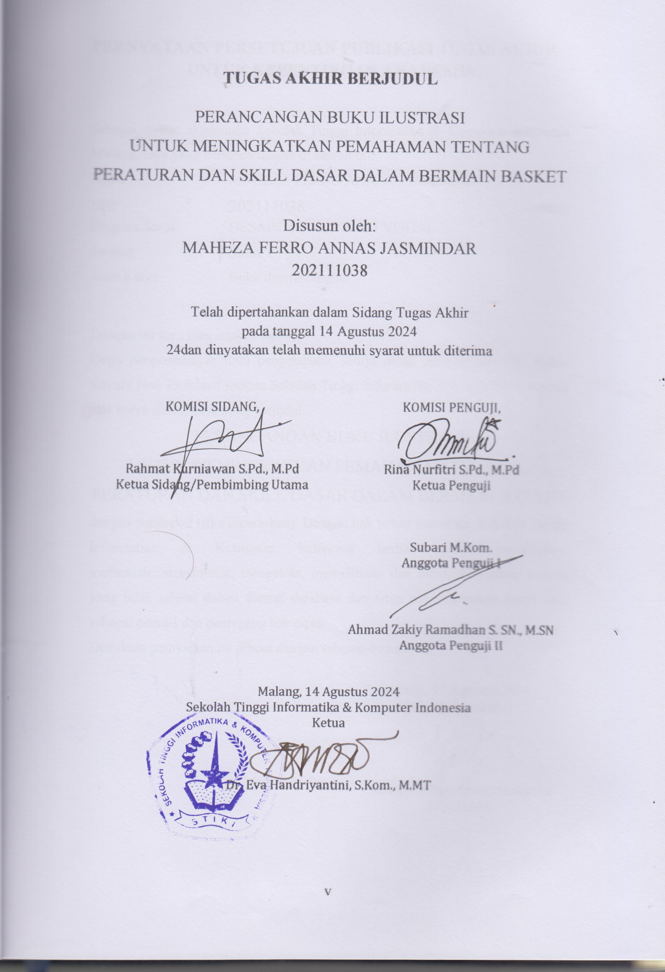 Maheza Ferro Annas, Jasmindar (2024) PERANCANGAN BUKU ILUSTRASI UNTUK MENINGKATKAN PEMAHAMAN TENTANG PERATURAN DAN SKILL DASAR DALAM BERMAIN BASKET. Sarjana thesis, Sekolah Tinggi Informatika & Komputer Indonesia.