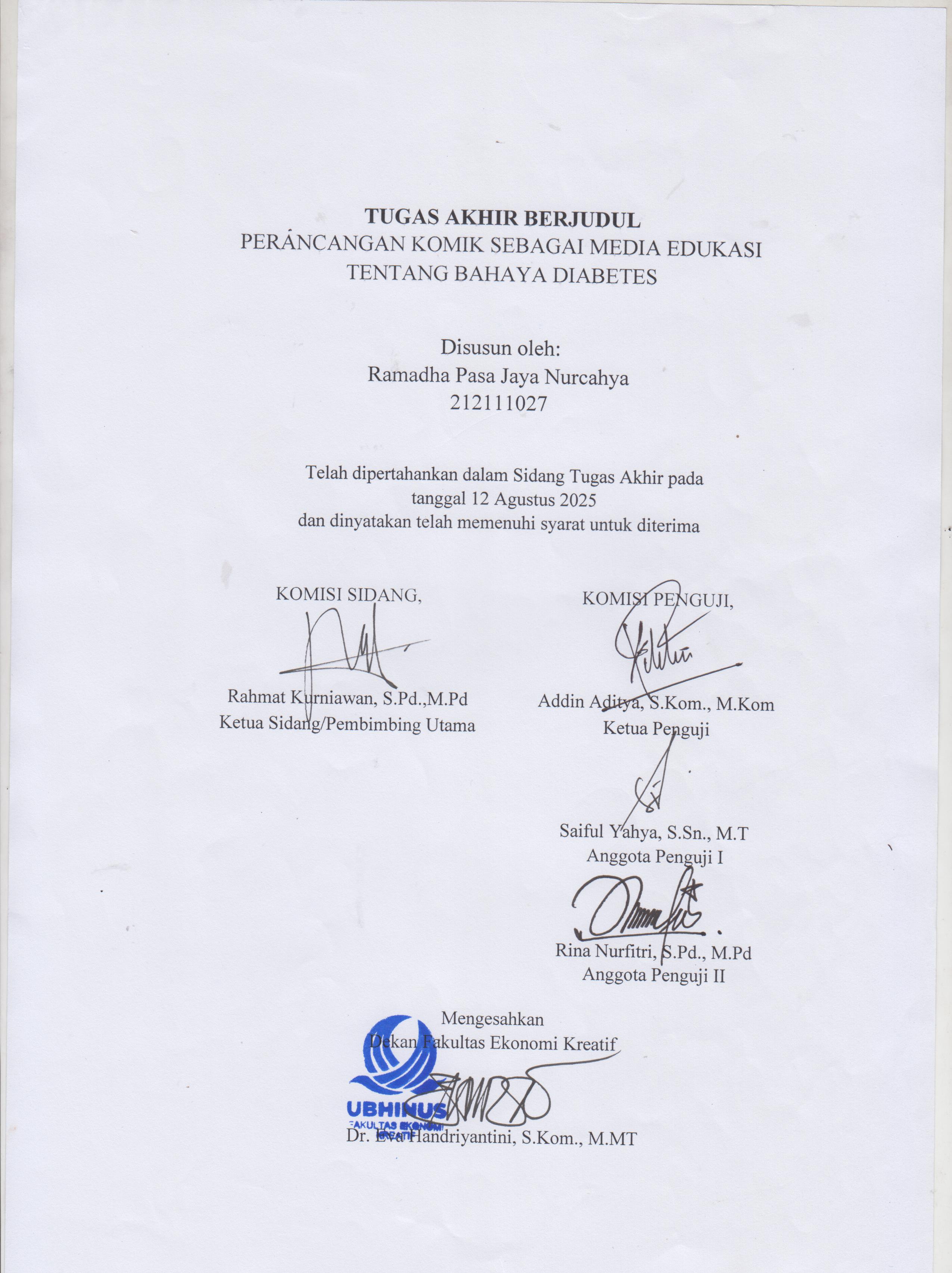 Nurcahya, Ramadha Pasa Jaya (2025) PERANCANGAN KOMIK SEBAGAI MEDIA EDUKASI TENTANG BAHAYA DIABETES. Sarjana thesis, Universitas Bhinneka Nusantara.