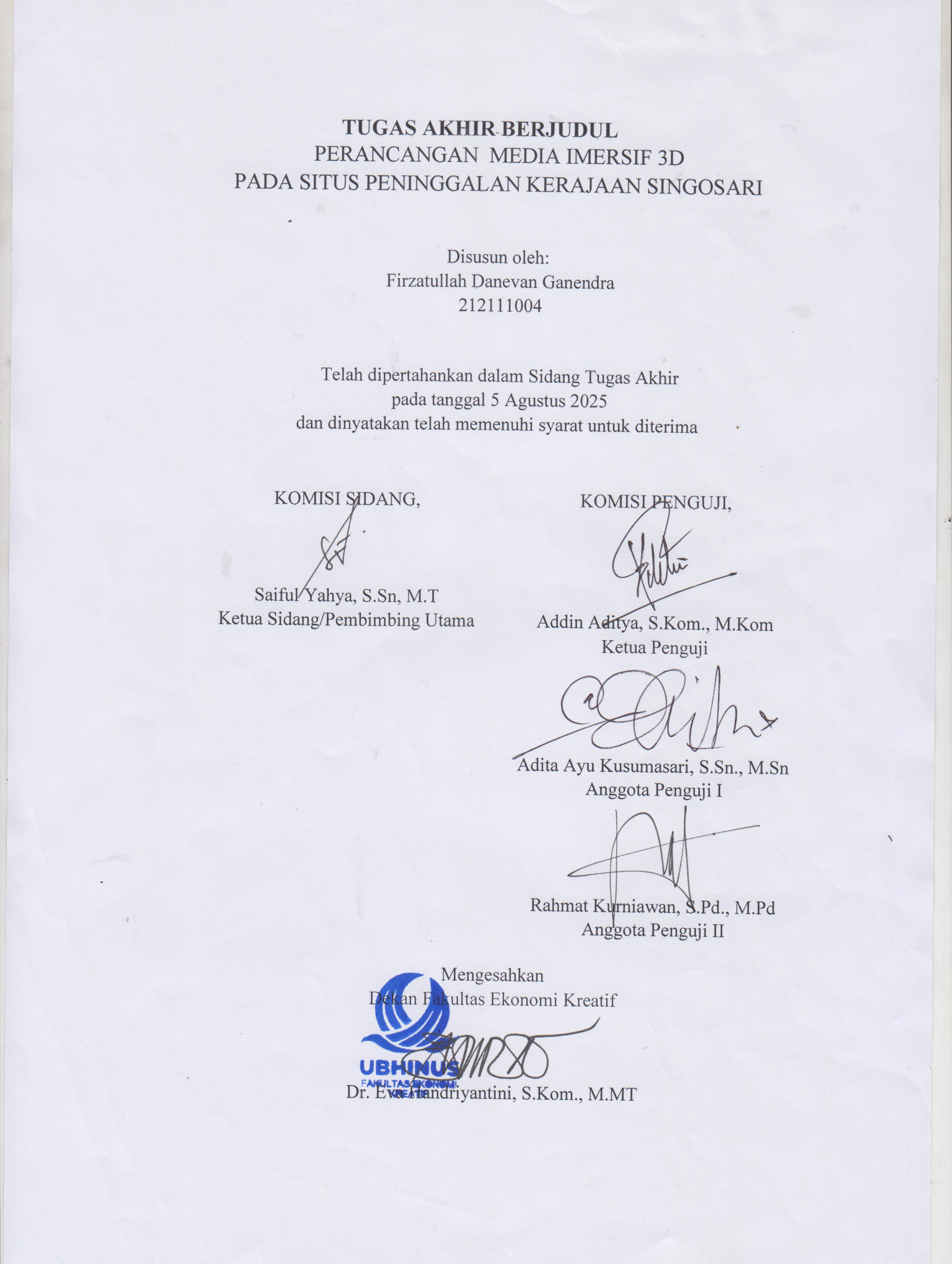 Ganendra, Firzatullah Danevan (2025) PERANCANGAN MEDIA IMERSIF 3D PADA SITUS PENINGGALAN KERAJAAN SINGOSARI. Sarjana thesis, Universitas Bhinneka Nusantara.