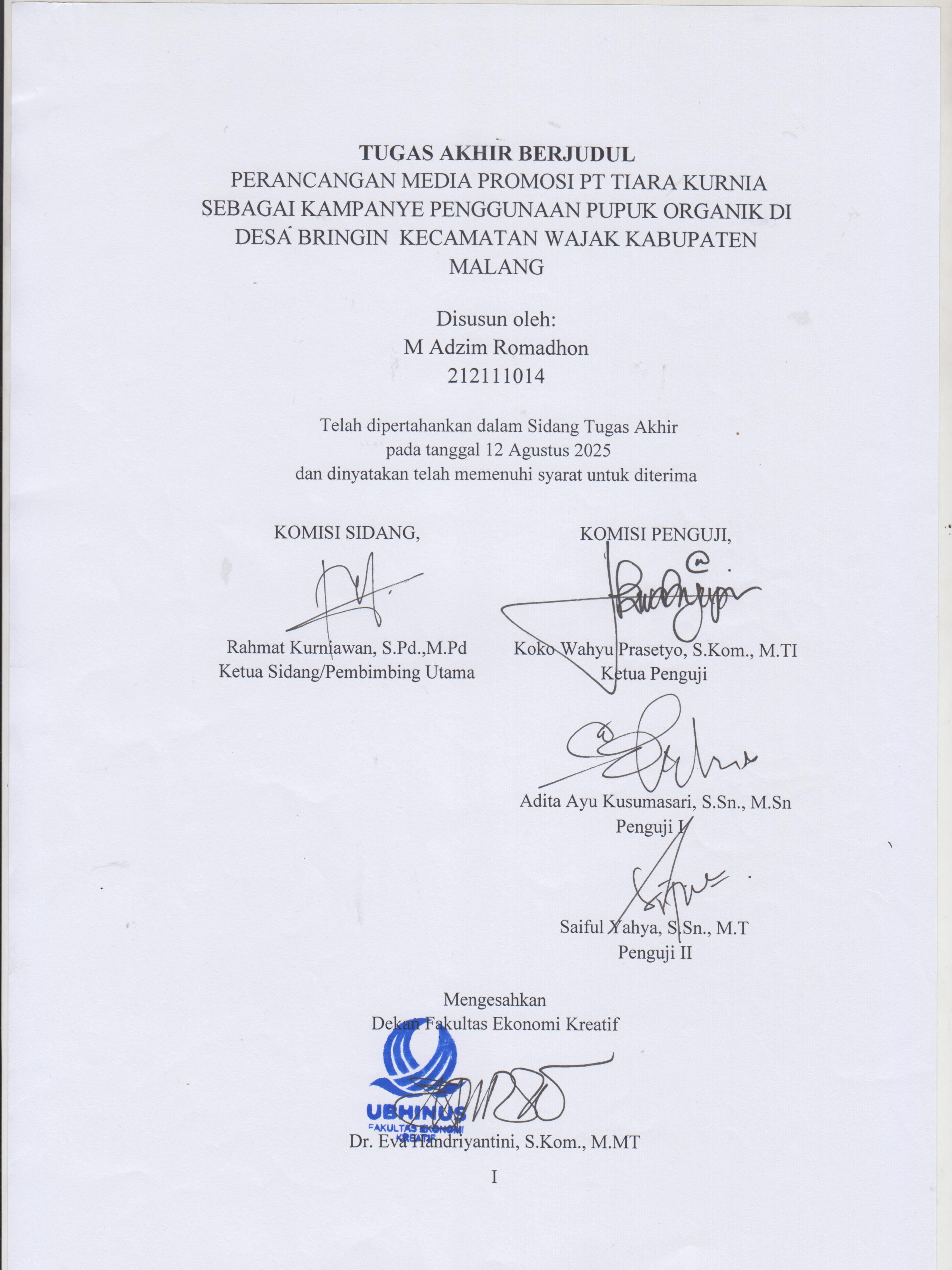 Romadhon, M Adzim (2025) PERANCANGAN MEDIA PROMOSI PT TIARA KURNIA SEBAGAI KAMPANYE PENGGUNAAN PUPUK ORGANIK DI DESA BRINGIN KECAMATAN WAJAK KABUPATEN MALANG. Sarjana thesis, UNIVERSITAS BHINNEKA NUSANTARA.