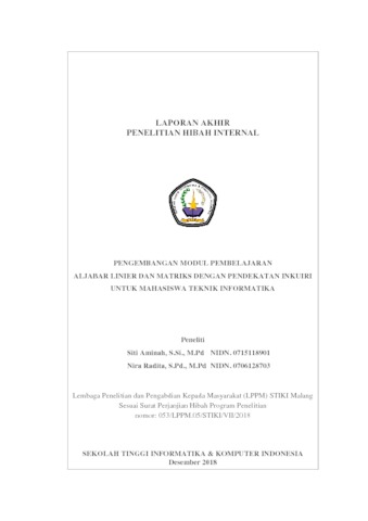 Siti, Aminah and Nira, Radita (2019) Pengembangan Modul Pembelajaran Aljabar Linier dan Matriks dengan Pendekatan Inkuiri untuk Mahasiswa Teknik Informatika. LPPM STIKI Malang.