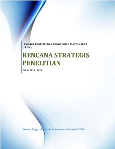 LPPM, STIKI (2016) Rensta Penelitian LPPM 2016 - 2019. Manual. LPPM STIKI Malang.