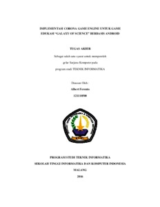 Albert Ferento, Albert Ferento (2016) IMPLEMENTASI CORONA GAME ENGINE UNTUK GAME EDUKASI “GALAXY OF SCIENCE” BERBASIS ANDROID. Sarjana thesis, SEKOLAH TINGGI INFORMATIKA DAN KOMPUTER INDONESIA MALANG.