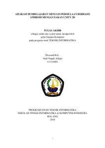 Andi Fiqqih Adiqro, Andi Fiqqih Adiqro (2016) APLIKASI PEMBELAJARAN MENULIS PERMULAAN BERBASIS ANDROID MENGGUNAKAN UNITY 2D. Sarjana thesis, SEKOLAH TINGGI INFORMATIKA DAN KOMPUTER INDONESIA MALANG.