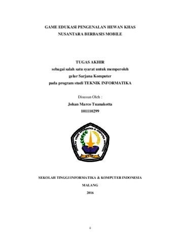 Johan Marco Tuanakotta, Johan Marco Tuanakotta (2016) GAME EDUKASI PENGENALAN HEWAN KHAS NUSANTARA BERBASIS MOBILE. Sarjana thesis, SEKOLAH TINGGI INFORMATIKA DAN KOMPUTER INDONESIA MALANG.